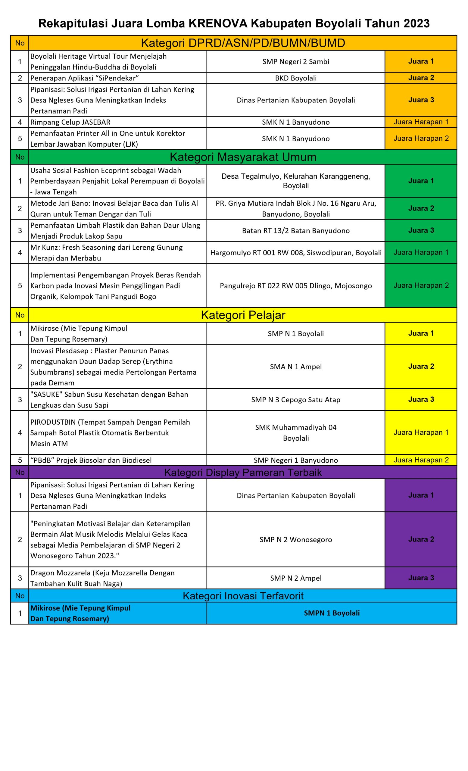 dan selanjutnya hasil akhir penilaian Krenova tersebut: